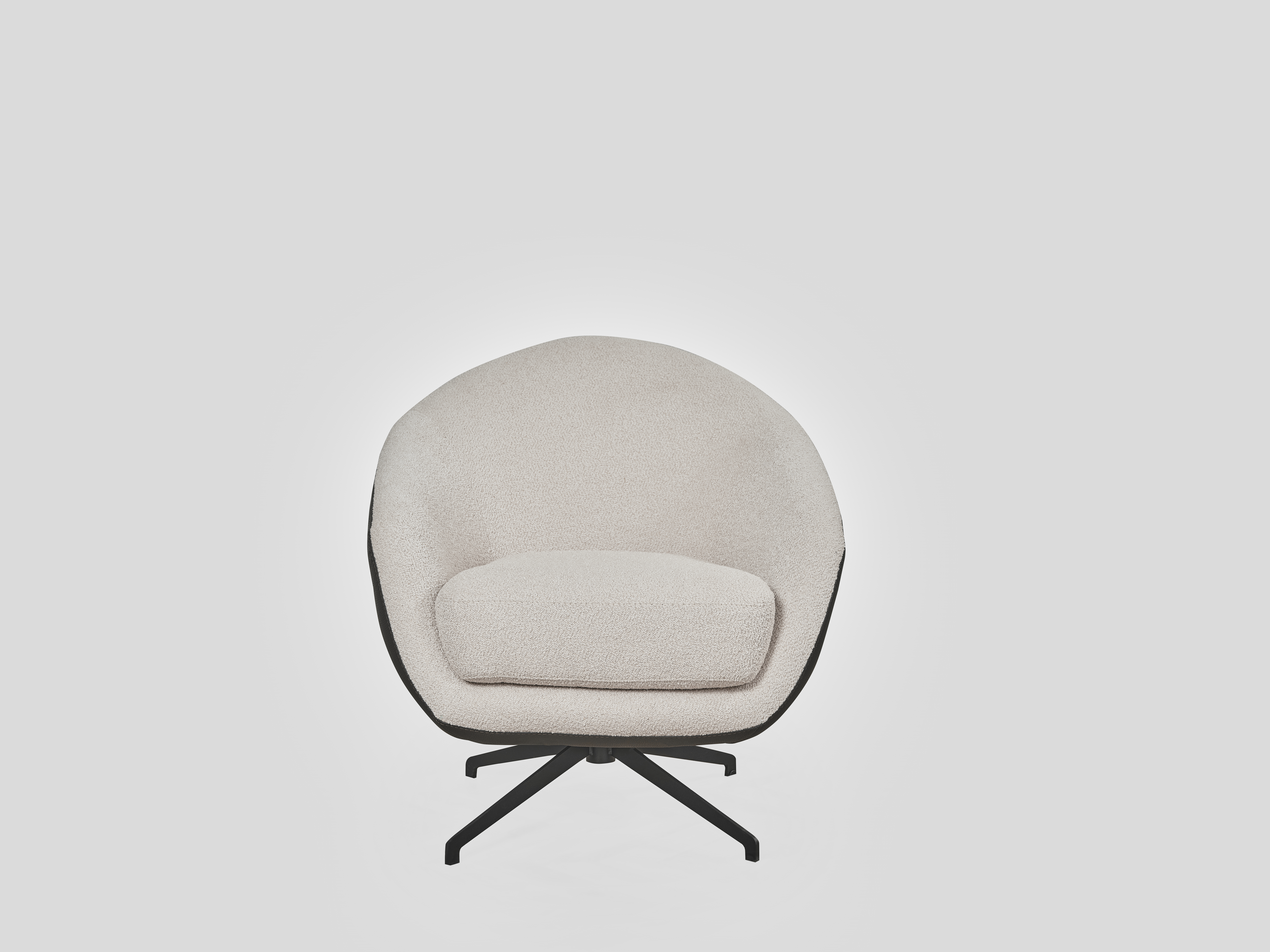 Dieses stilvolle Bergère besticht durch seine runde, einladende Form und den gemütlichen Komfort. Der weiche, in neutralem Beige gehaltene Stoff sorgt für eine angenehme Haptik und fügt sich mühelos in verschiedene Wohnstile ein. Das moderne Design wird durch das schwarze Metallgestell abgerundet, das dem Sessel einen eleganten und zeitgemäßen Look verleiht. Mit seinem komfortablen Sitz und der geschwungenen Rückenlehne lädt dieser Bergère zu entspannten Stunden in Ihrem Wohnzimmer oder Leseecke ein. Ein ideales Möbelstück für alle, die sowohl Stil als auch Komfort schätzen.