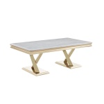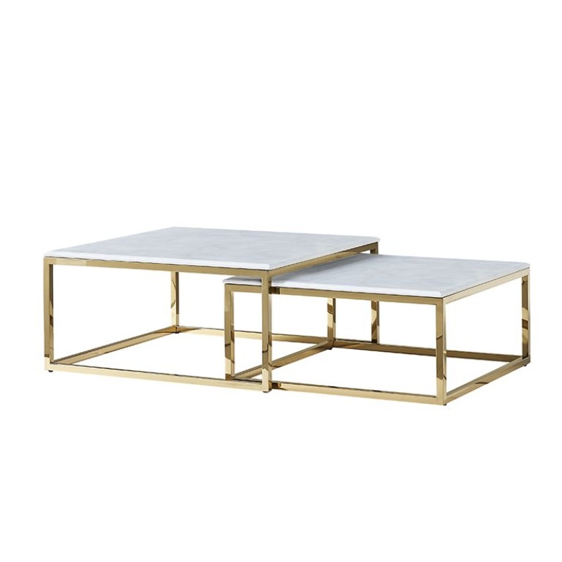 Entdecken Sie unseren modernen Couchtisch, der mit seinem innovativen Design und der eleganten Verarbeitung überzeugt. Dieses Set aus zwei Tischen bietet nicht nur eine praktische Ablagefläche, sondern auch eine stilvolle Ergänzung für Ihr Wohnzimmer. Die Kombination aus hochwertigen Materialien und einem ansprechenden goldenen Rahmen verleiht jedem Raum eine luxuriöse Note. Er ist in verschiedenen Farben erhältlich, sodass Sie ihn individuell an Ihre Einrichtung anpassen können. Perfekt für gesellige Abende oder einfach zum Entspannen!