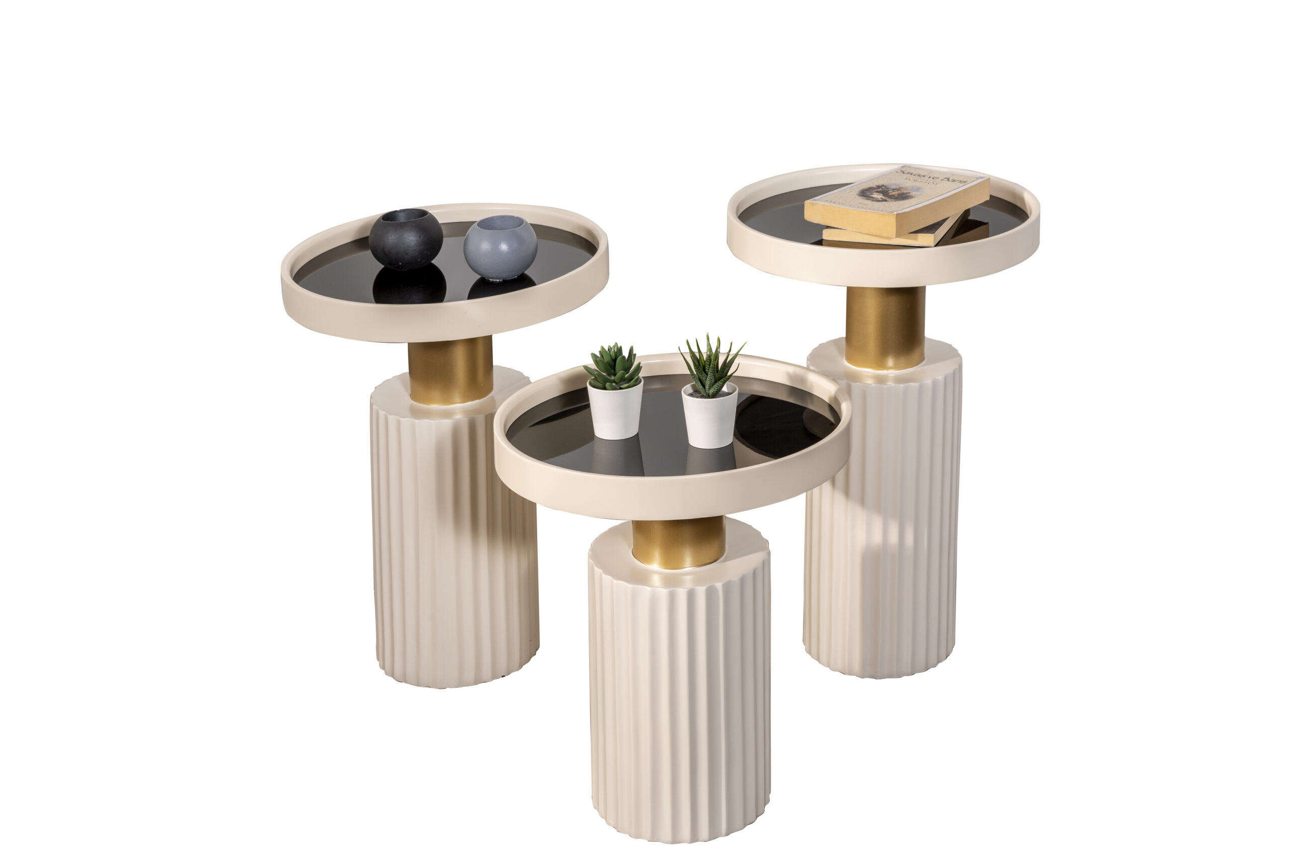 Dieser elegante Couchtisch besticht durch seine modernen Linien und das luxuriöse Design mit goldenen Akzenten. Er ist ideal, um deinem Raum einen stilvollen und minimalistischen Touch zu verleihen. Der Tisch ist einzeln erhältlich und passt perfekt in jedes Wohnzimmer, das eine Mischung aus Eleganz und Funktionalität sucht.